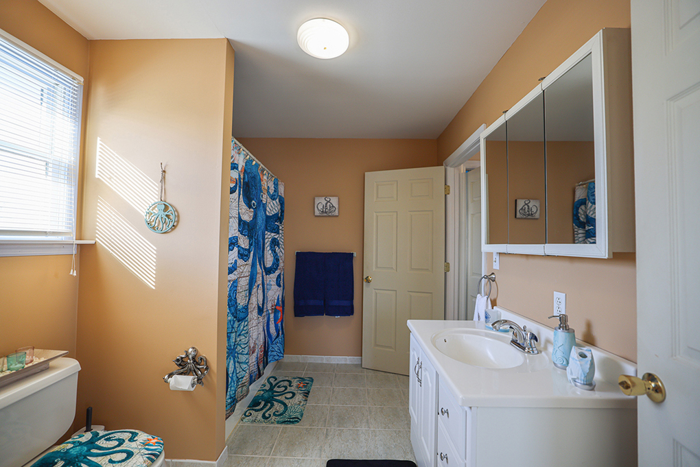 What is your pleasure, beach or pool today?! This beach home offers the best of everything! The home is located two blocks to the bay and also offers a refreshing pool. Upon entering the home you will find the living room with comfy couches, TV and a gas fireplace for chilly evenings. Adjacent to the living room is a half bath and a laundry room with a washer and dryer for all your laundry needs throughout your stay. The kitchen is fully equipped for preparing your meals and the table seats six. There is a 3-season room with table and chairs to enjoy your morning paper and coffee. The back yard has a wonderful pool, large deck with lounge chairs and also a gas grill for barbeques. There is an outside shower to rinse off those sandy toes too. Back in the home, the upstairs has a sitting area, 3 bedrooms and a full bathroom complete with tub and shower. The master bedroom has a king bed, the second bedroom has a queen bed and the third bedroom has a twin bunk over a full bed. All bedrooms are bright and have a beach vibe! The home is pet friendly, 2 pets max, $150 per pet per stay. The home is also fenced in to keep your furry friends safe. This home will make for wonderful vacation memories for you and your family!