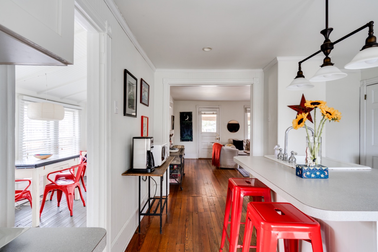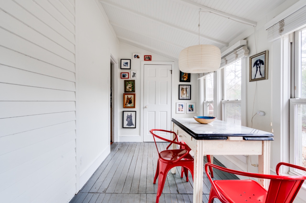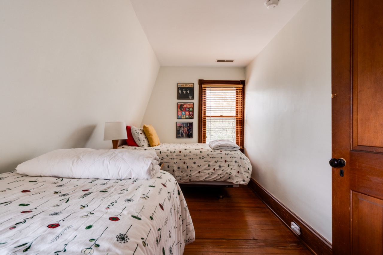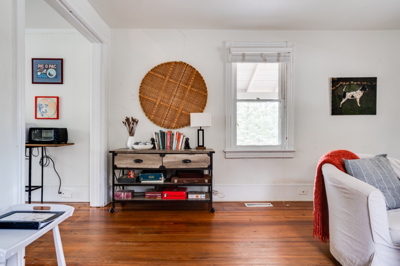 This charming, fully renovated house is not just “dogs allowed”, but is truly dog-friendly. Bring your best friend along and enjoy all that the area has to offer. The property is nearly two acres of woods, which attract interesting birds to the yard all year round. The first floor offers a well-equipped kitchen, dining porch, comfy living room, laundry/ half bath. Upstairs offers a main bedroom with a balcony overlooking the woods, a bath with tub and tile shower, and a second bedroom with twin beds.