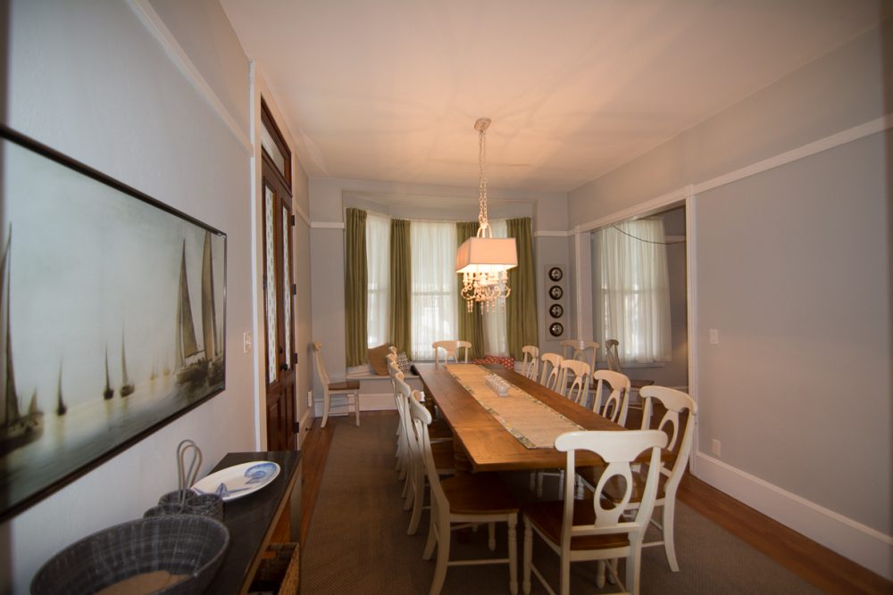 After a day of sightseeing or shopping, you’ll enjoy relaxing in this home’s expansive living spaces. Enter the large foyer through the welcoming Dutch door and enjoy this entertaining area which is fully equipped with bar glasses, ice bucket, and serving pieces. A large adjoining living room with big comfortable wraparound sofas and a game table welcome you along with a fireplace original to the home. Lots of seating here in this beautiful room which is appointed with lots of books, many DVDs, and a 55-inch high definition Smart TV with upgraded cable package, and wireless internet….all for your enjoyment.
